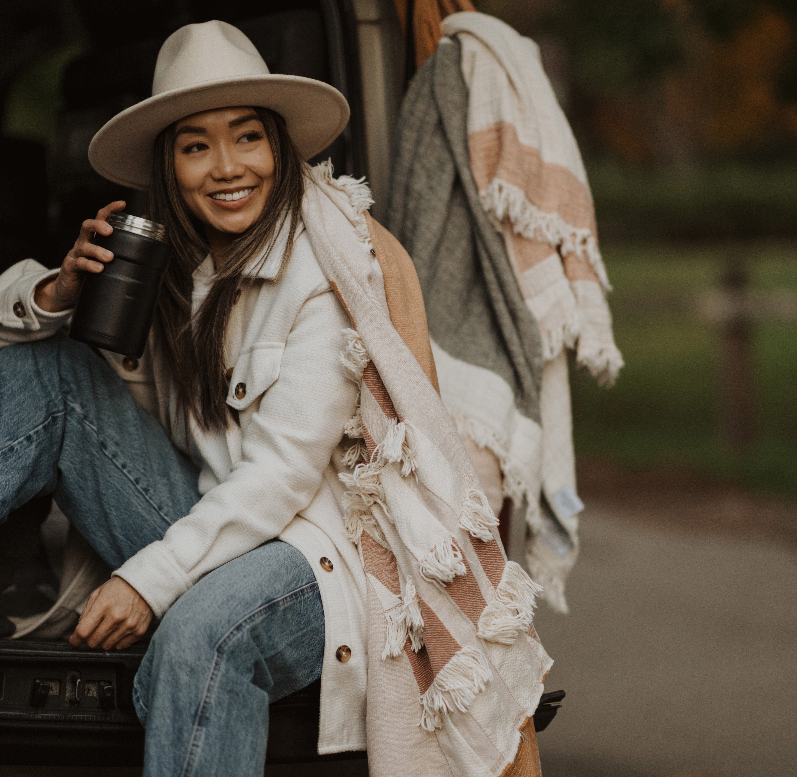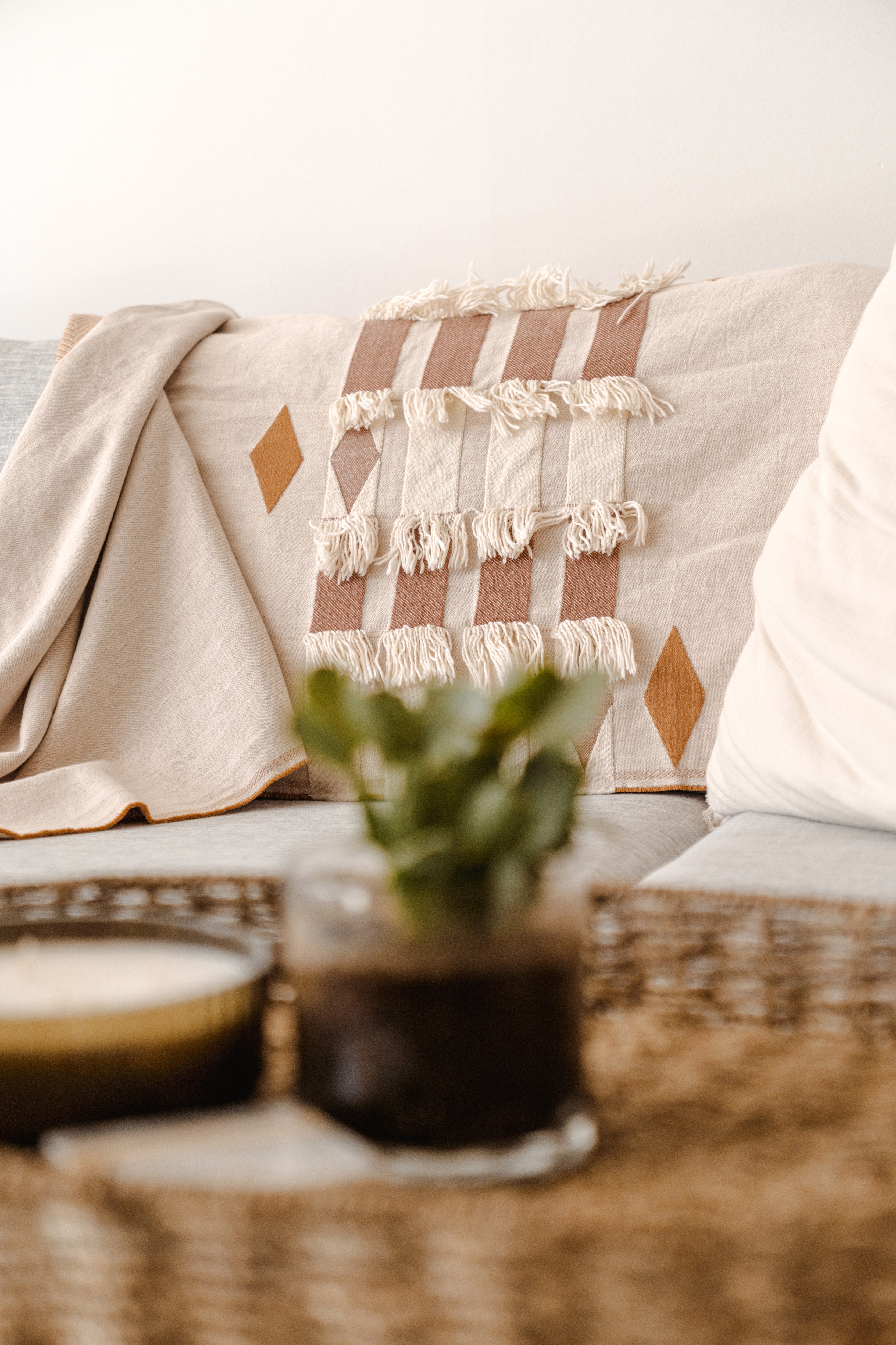 This reversible throw blanket is an exquisite example of craftsmanship, boasting an intricate woven body and fringe detail. It's two-toned design allows for a flexible yet sophisticated look that adds a touch of luxury to any space.