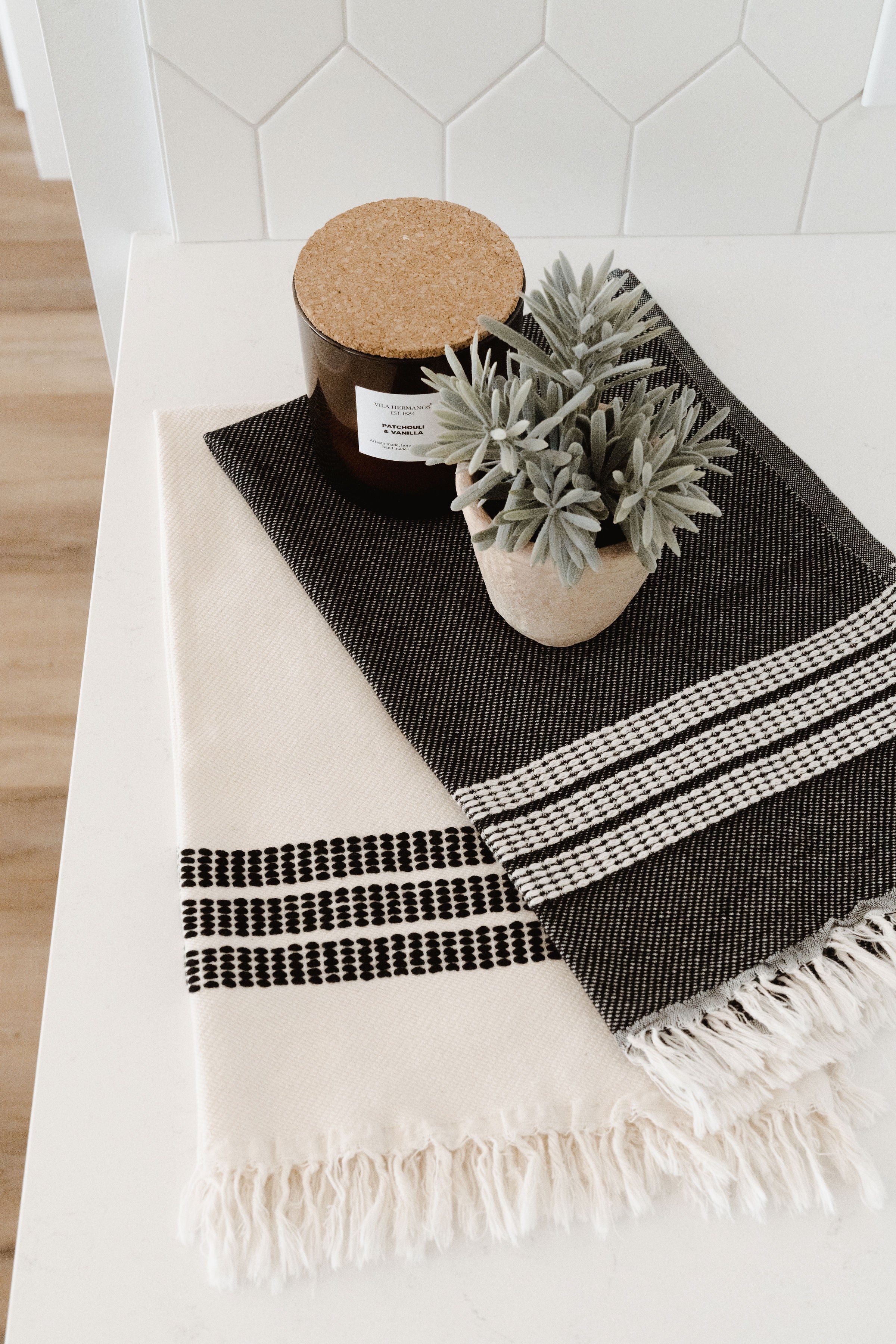 Get creative in the kitchen with Rhodes! This set of 2 mix and match towels boasts a thick weave for optimal absorbency. The timeless striped pattern adds a touch of warm and contemporary design to any kitchen without . Say goodbye to spills and hello to style!