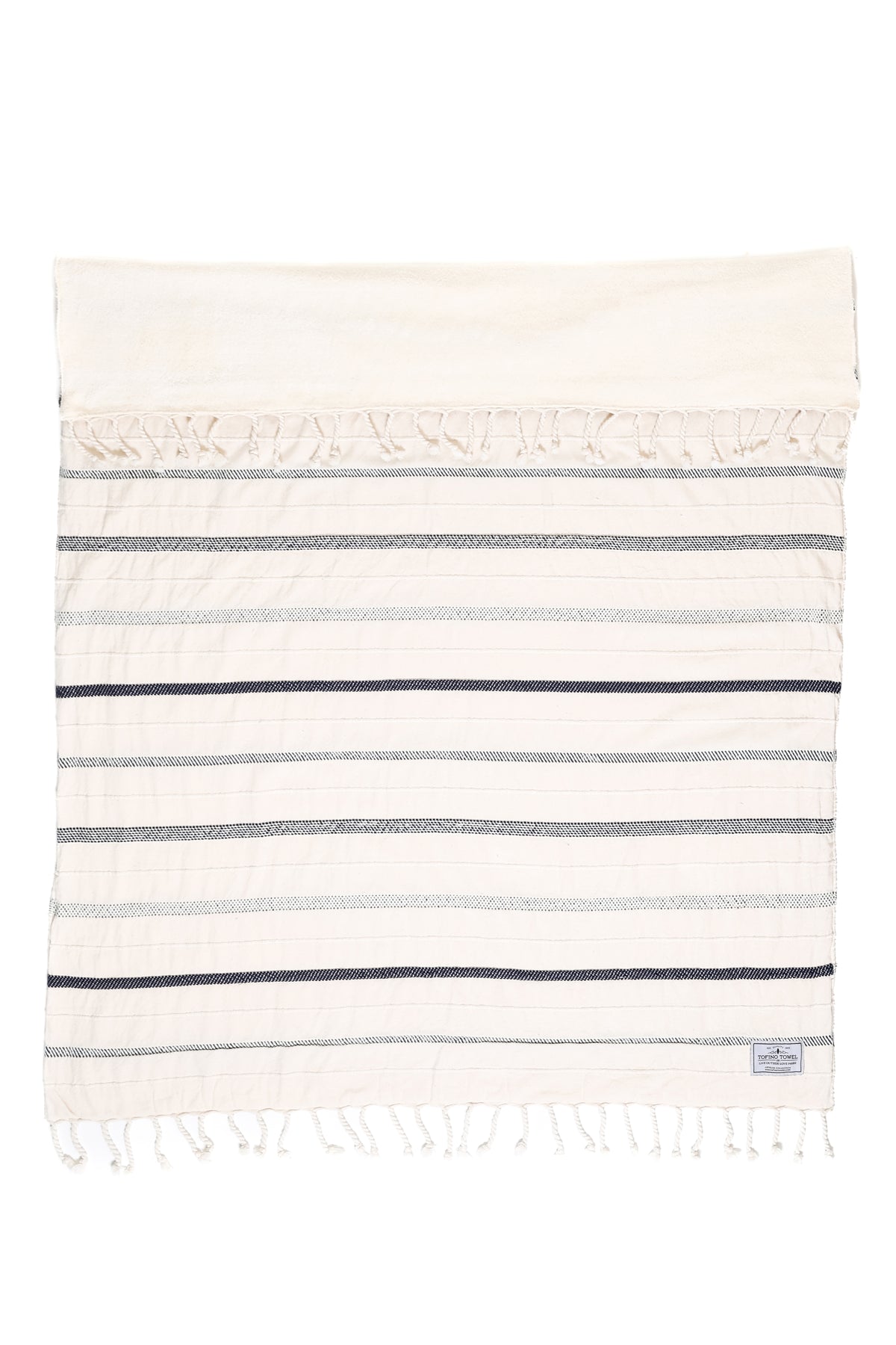 Introducing an elegant take on the classic fleece throw blanket: crafted from luxurious natural cotton and featuring rope-like stitch detailing in a timeless navy stripe for a look that is both stylish and sophisticated. Wrap yourself in luxury with this timelessly classic piece.