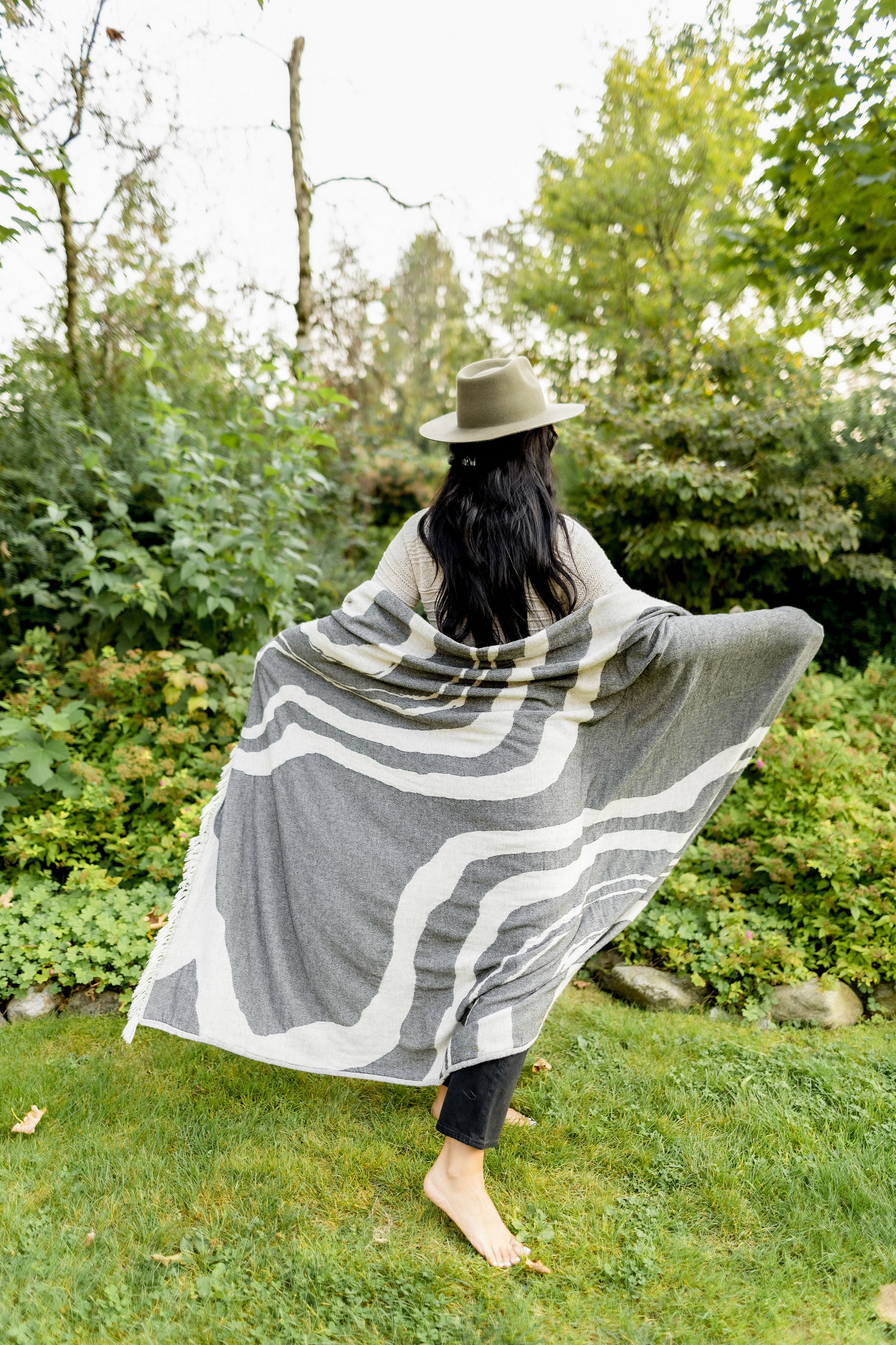 The Mara throw is 'that missing piece' for any home. Inspired by nature, the abstract waters-edge pattern and natural woven texture is the perfect blend of modern and organic design. The reversible jacquard design allows you to choose a light or dark side to suit your space (or mood) while luxurious blend of Turkish cotton and Lambswool takes this throw to a whole new level of cozy.