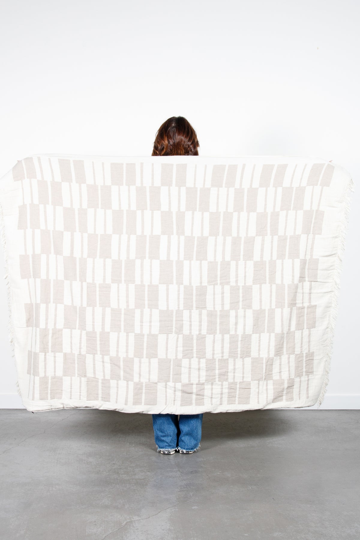 Add some texture and coziness to your home with the Vance fleece throw. Designed with an abstract plaid design in neutral tones, this throw adds the perfect touch to any interior. Woven Turkish cotton on one side and super soft cotton fleece on the other, you wont be able to resist cuddling up in it every chance you get. This modest yet playful throw is the perfect gift or addition to your coziest of nooks.