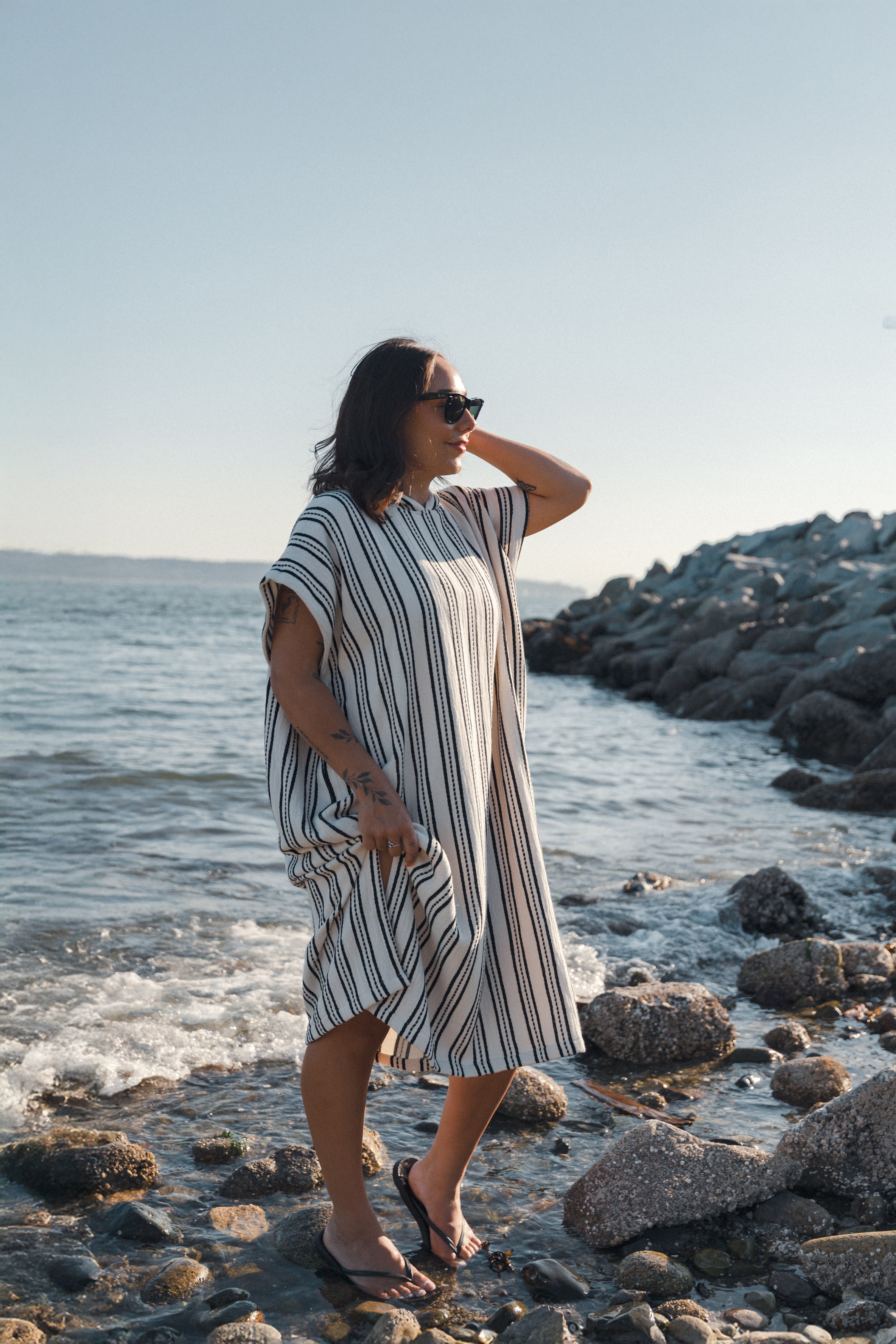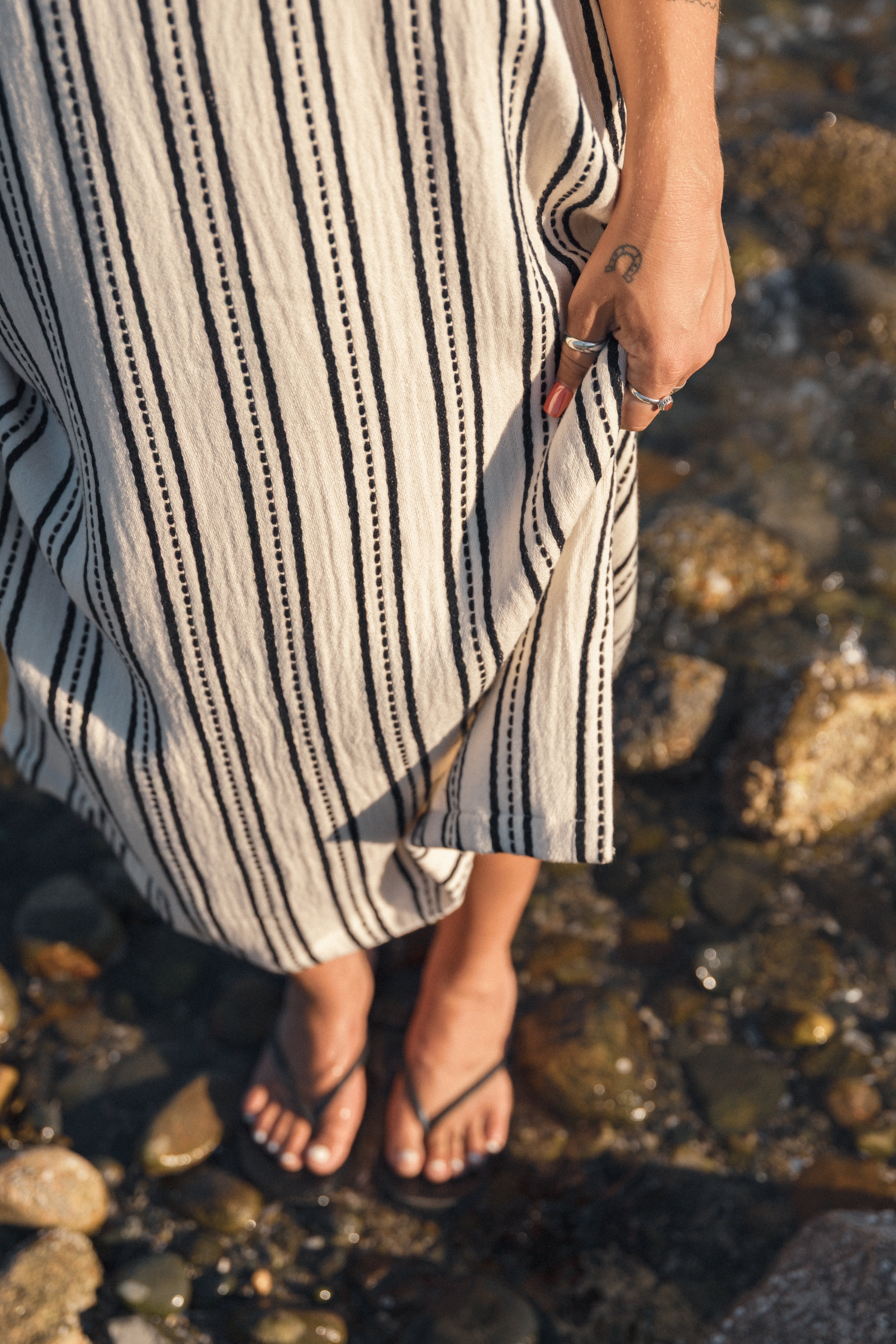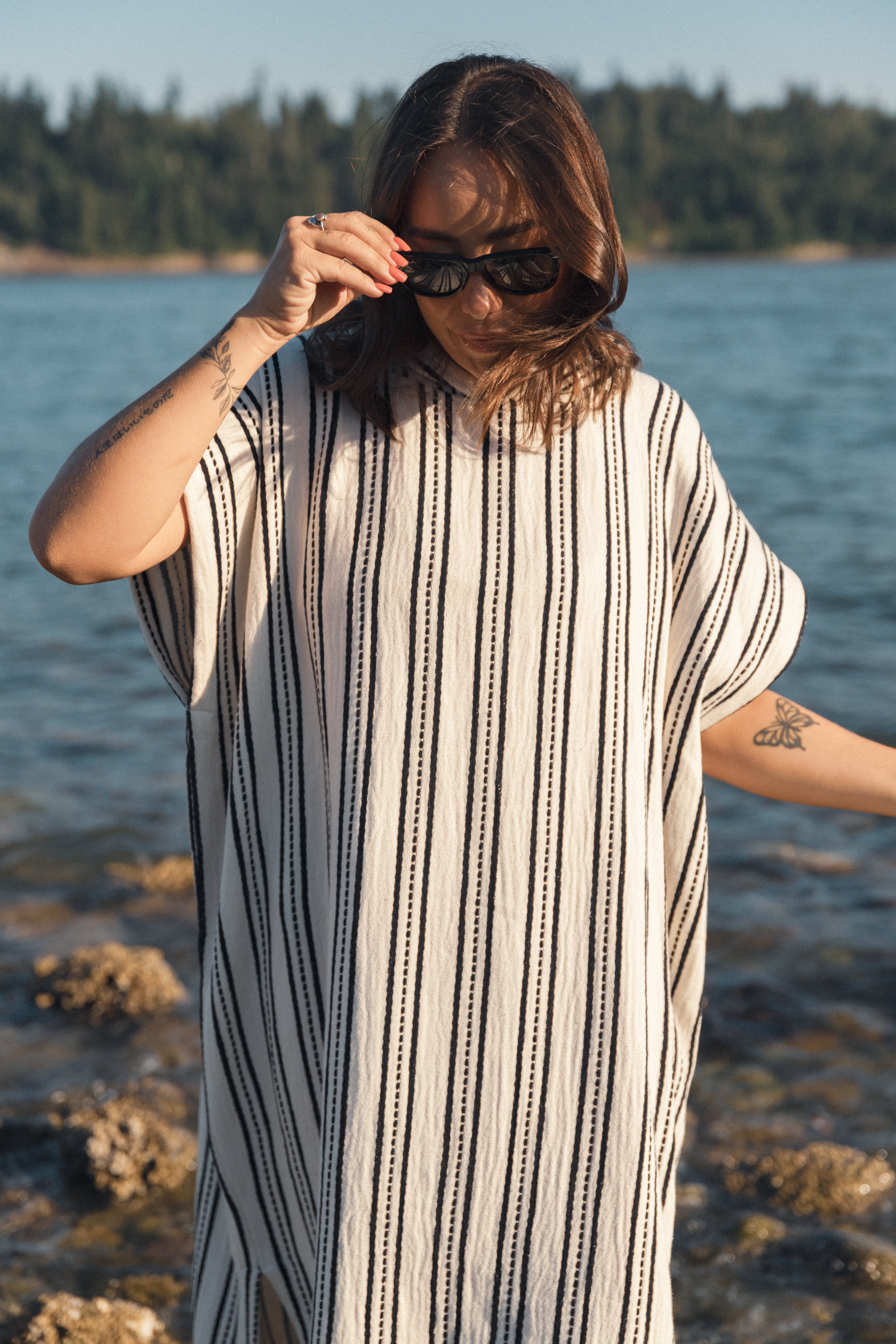 The Tatlow poncho is where effortless style meets comfort. Designed with movement and ease in mind, this poncho is your go-to for easy breezy summer days. Woven from Turkish cotton, with hand-stitched black stripes this lightweight poncho will keep you feeling stylish and carefree no matter where your day takes you.