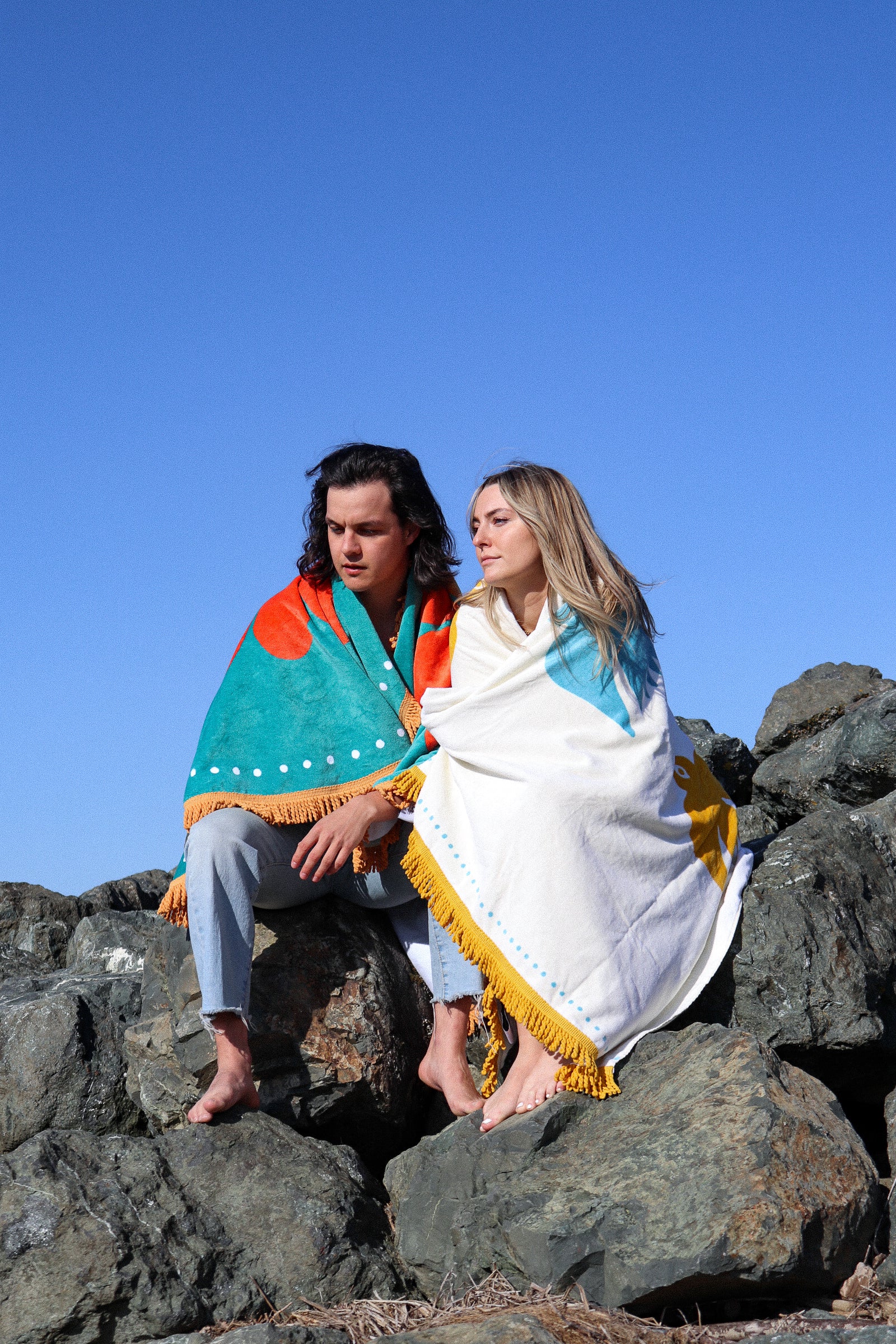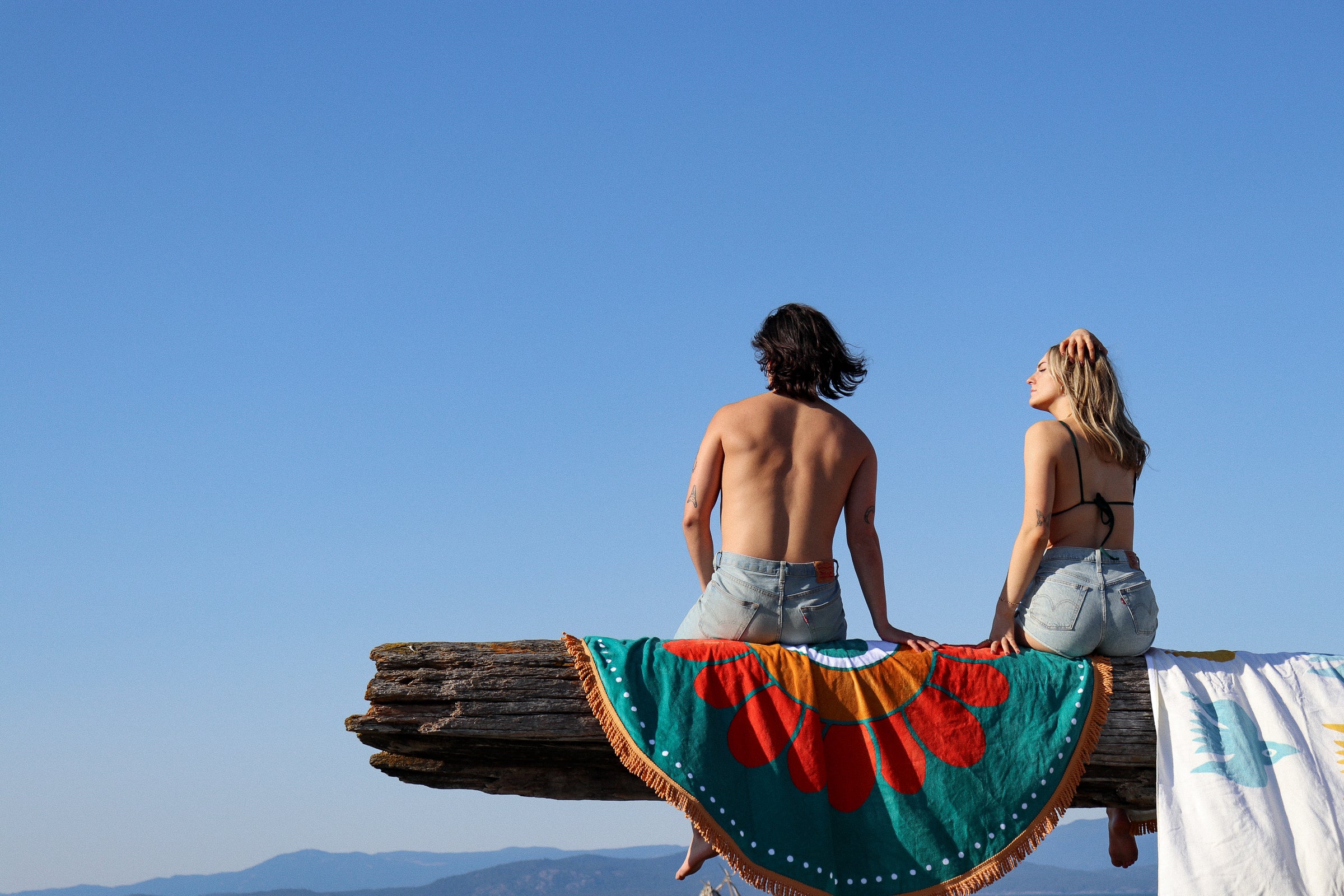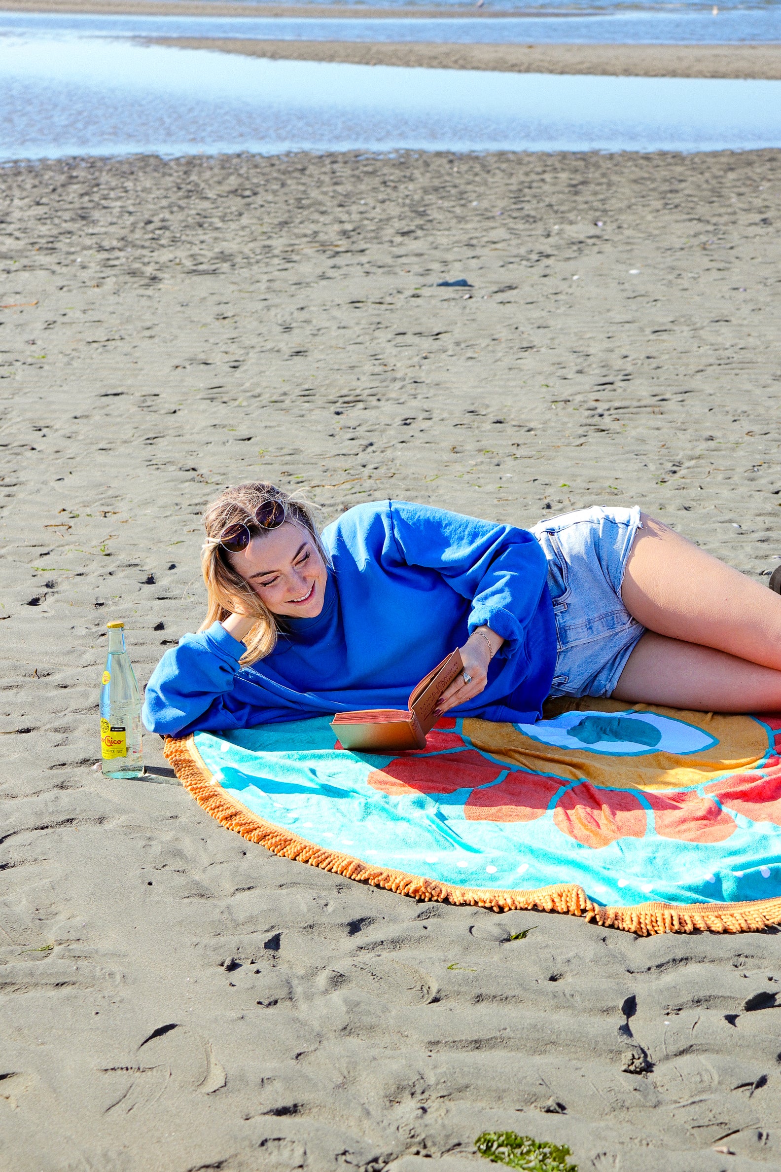 Get in touch with your inner flower child with the Flower Power velour round towel. Made from super soft cotton terry, this towel has a playful vibe of it's own and is ready to soak up the sun with you everywhere you go.